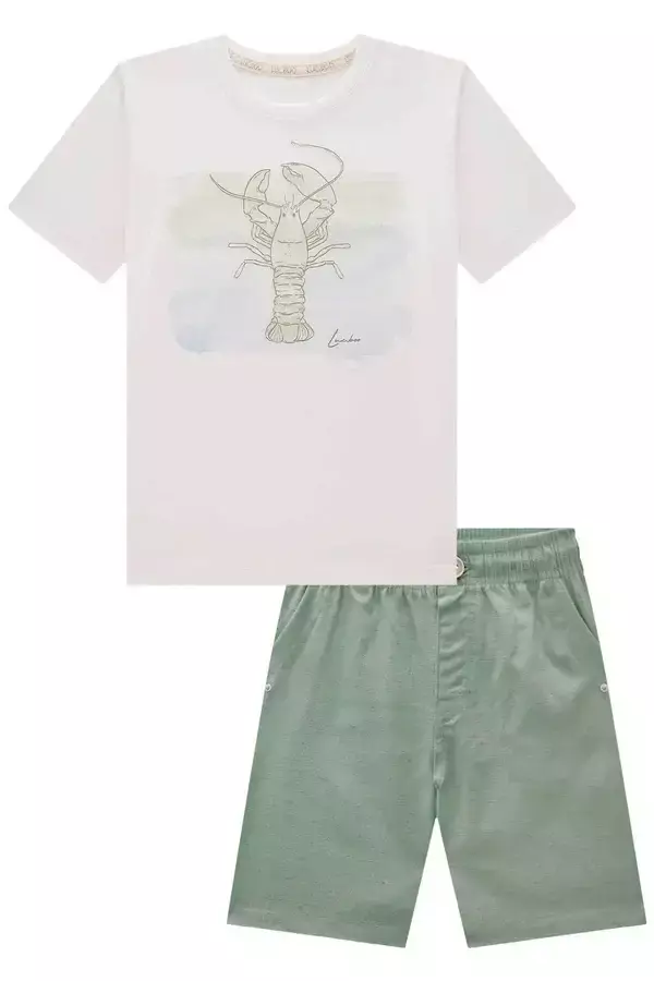 O conjunto de camiseta em meia malha e bermuda em linho santorine com elastano prepara os pequenos para os dias de sol e diversão. Este conjunto confortável e estiloso é perfeito para aproveitar um dia de lazer com muito estilo! A estampa divertida adiciona um charme especial à peça.