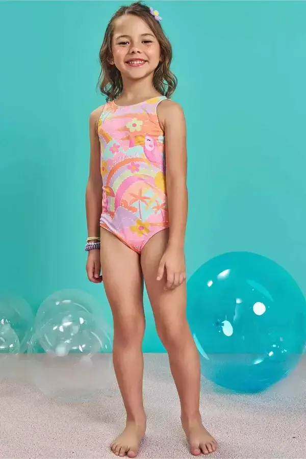 O maiô em malha com proteção UV50+ prepara as pequenas para se divertirem na praia ou na piscina com muito estilo e conforto! Disponível em duas cores super estilosas - laranja e rosa - é uma peça que combina encanto, conforto e, o mais importante, proteção! Perfeita para a pele delicada das meninas nos dias ensolarados. A sublimação divertida adiciona um charme especial à peça.