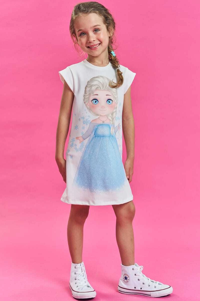 O vestido em molecotton, é a peça perfeita para meninas que amam aventura e diversão! Disponível em uma cor super estilosa - off white - ele oferece a combinação perfeita de conforto e estilo. A sublimação divertida da princesa Elsa e o strass, adicionam um charme especial à peça.
